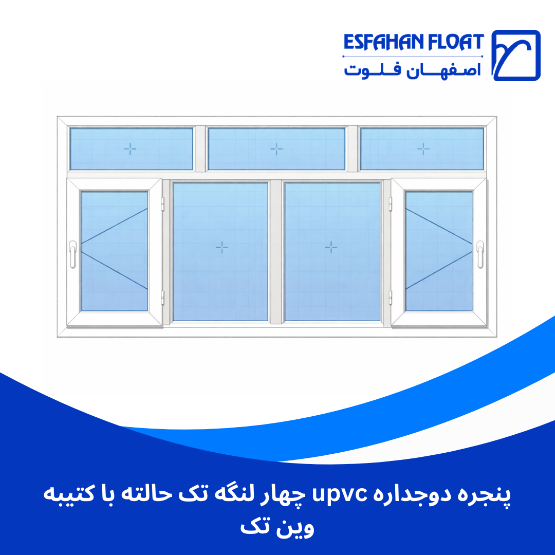 قیمت پنجره دوجداره upvc چهار لنگه تک حالته با کتیبه وین تک