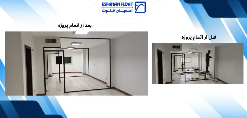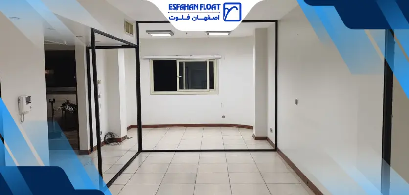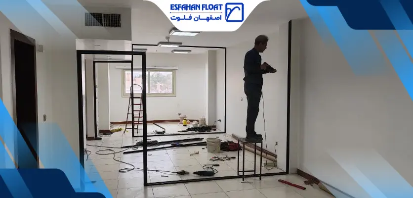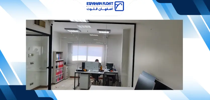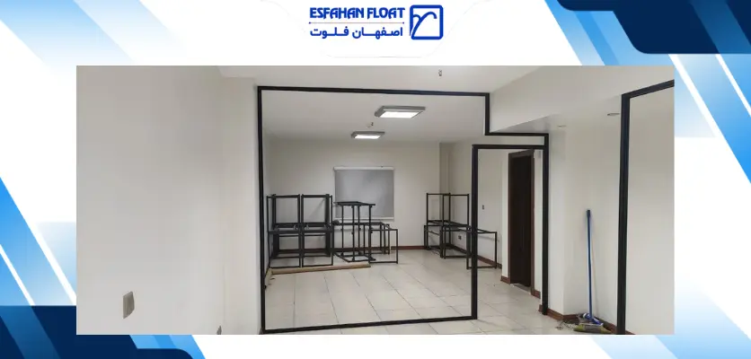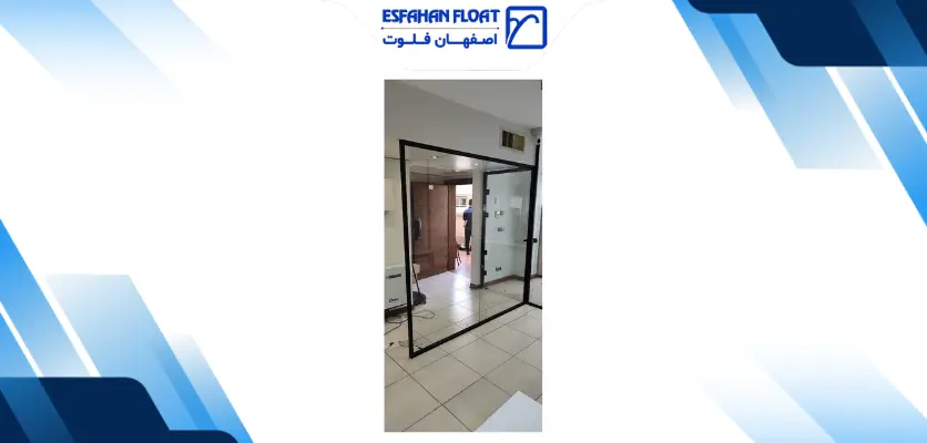 پارتیشن شیشه ایشیشه ۱۰ میل سکوریت رنگیرنگ پروفیل مشکی مات همراه با یراق طرح فرودگاهی
